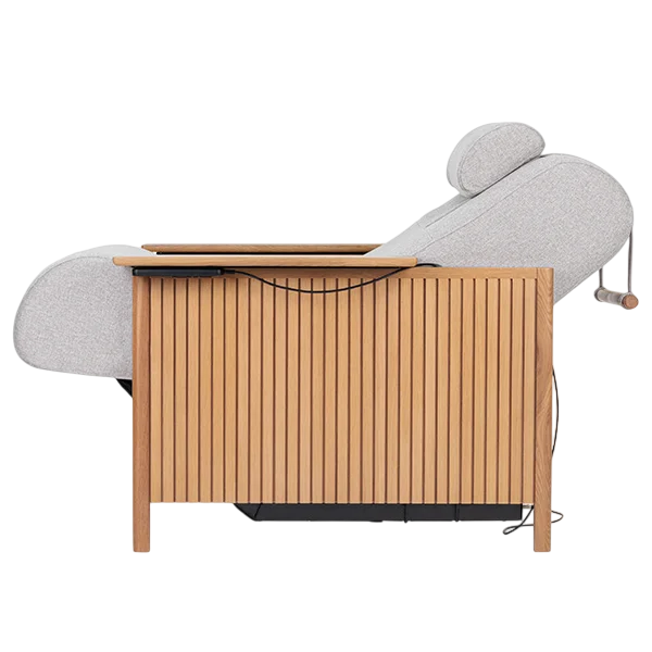 Enhance your relaxation with the gentle rocking feature, which cradles you smoothly back and forth, providing a peaceful retreat from the day’s stresses. For those who desire even more control, manual mode allows fine tuning of every detail, ensuring a massage perfectly tailored to your preferences. Once your session concludes, the massage mechanism discreetly retracts, leaving behind a beautifully crafted rocking recliner. The perfect chair for enjoying a coffee and your favorite book.
